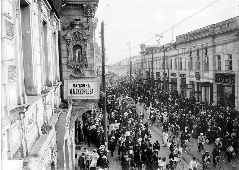 Большая Покровская улица. День «Белой ромашки». Автор: М.П. Дмитриев Место события: г. Н.Новгород Дата: 1912 г.