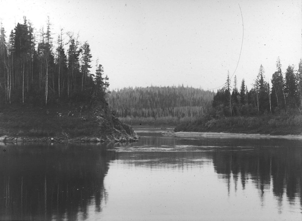 У Острова Кораблик. На переднем плане - пологие берега. Автор: В.А. Зевеке Место события: река Енисей Дата: 18 сентября 1914 г.