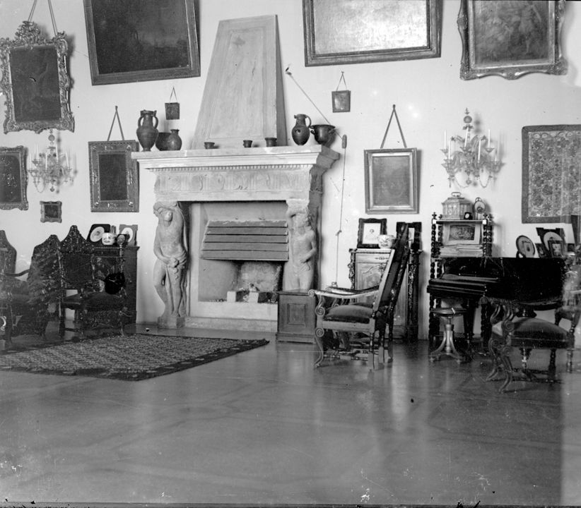 Интерьер гостиной комнаты. Слева - камин. Автор: А.А. Зевеке Место события: г. Н.Новгород Дата: к. XIX - нач. ХХ вв.