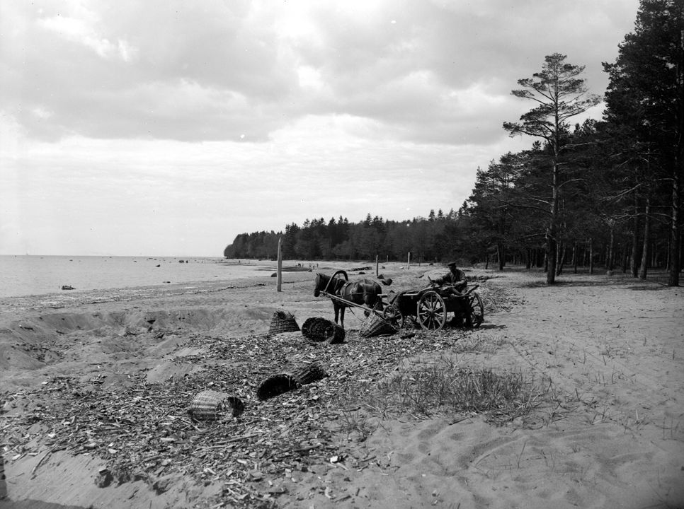 Гужевая повозка на берегу реки Волги. Автор: В.А. Зевеке Место события: г. Н.Новгород Дата: нач. ХХ в.