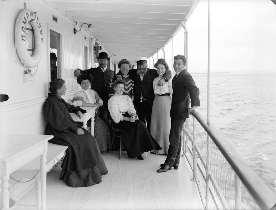 Пассажиры парохода «Ломоносов» на верхней палубе. Автор: В.А. Зевеке Место события: г. Астрахань Дата: 1908 г.