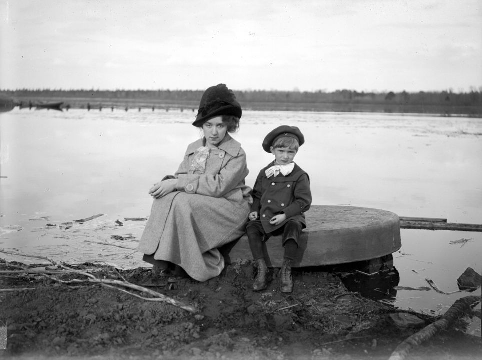 Неизвестная дама в темной шляпе, светлом пальто, с мальчиком 6-7 лет. Автор: В.А. Зевеке Место события: г. Воткинск Дата: 1913 г.