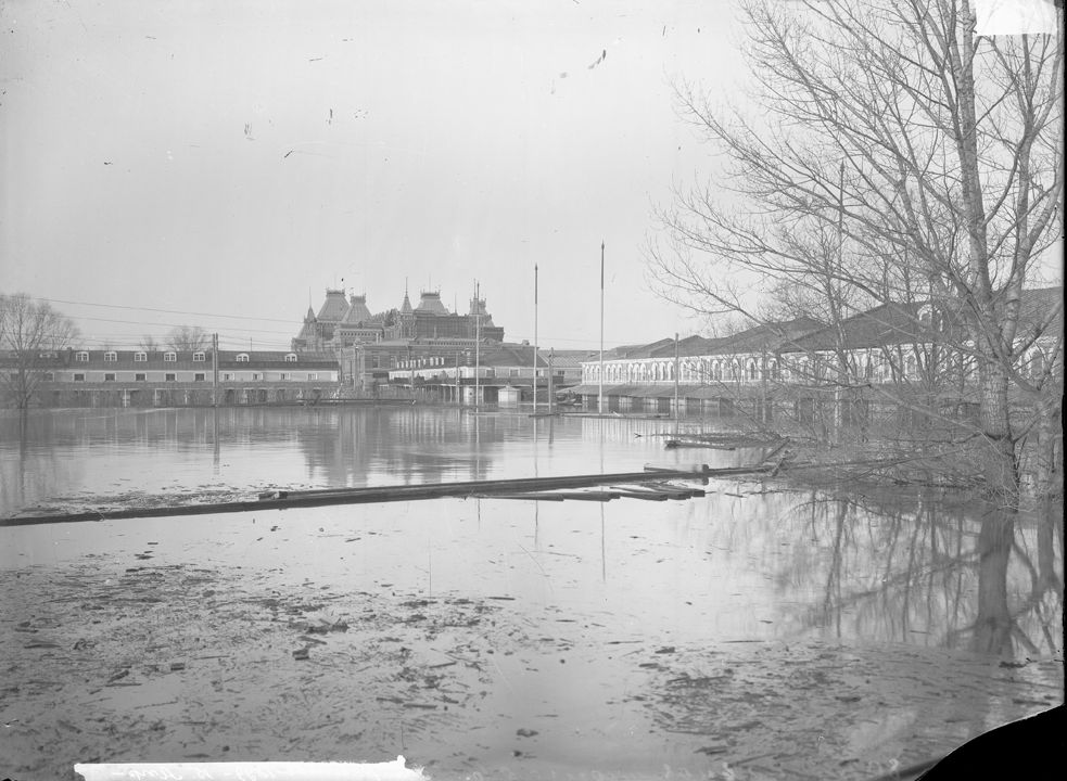Нижегородская ярмарка во время половодья. Вид на Театральную площадь. Нижний Новгород.