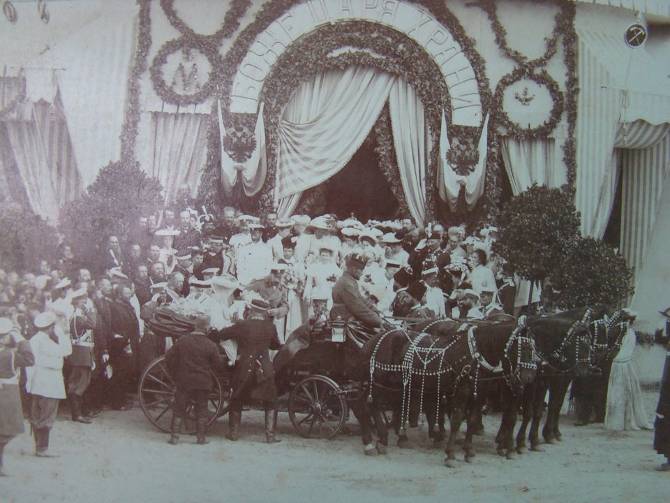 Визит Николая II в Саровский монастырь. Отъезд четы Романовых в Саровский монастырь. Дата: 1903 г. Место съемки: г. Н.Новгород Автор: М.П. Дмитриев