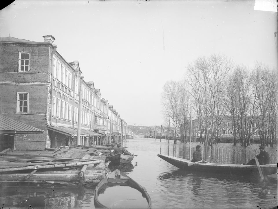 Нижегородская ярмарка во время половодья. Вид на Театральную площадь. Нижний Новгород.