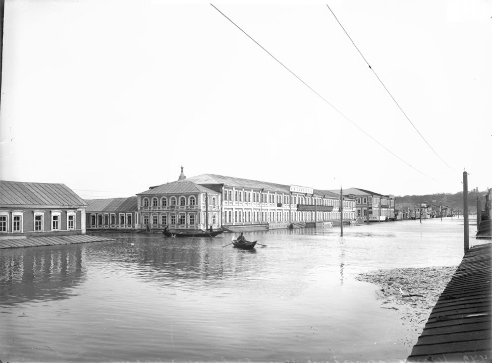 Нижегородская ярмарка во время половодья. Вид на Нижегородскую улицу. Нижний Новгород.