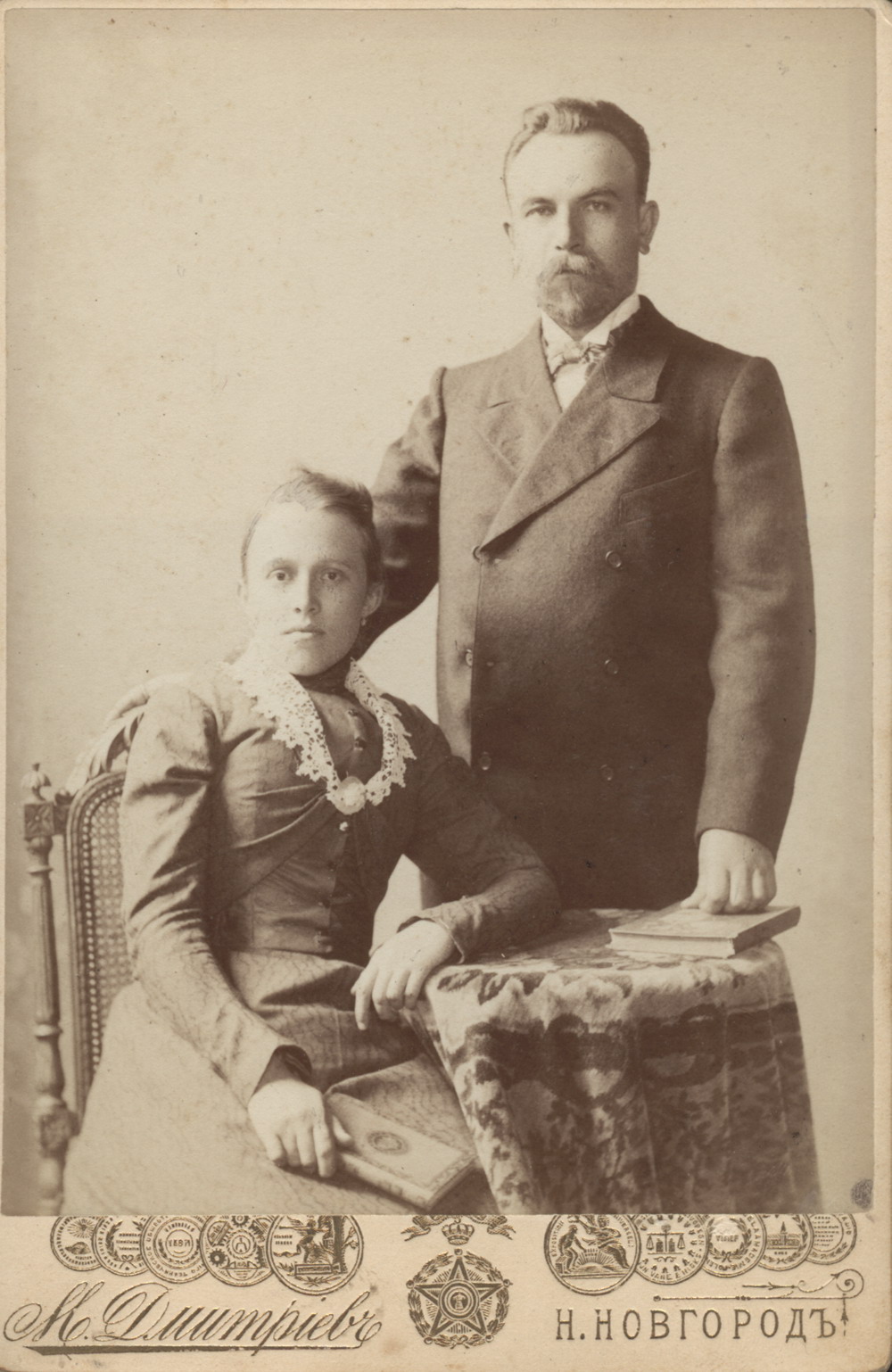 Дмитриев М.П. (1858-1948). Город Нижний Новгород. Портрет жителей села Павлова Горбатовского уезда Нижегородской губернии супругов Горшковых. Начало ХХ в