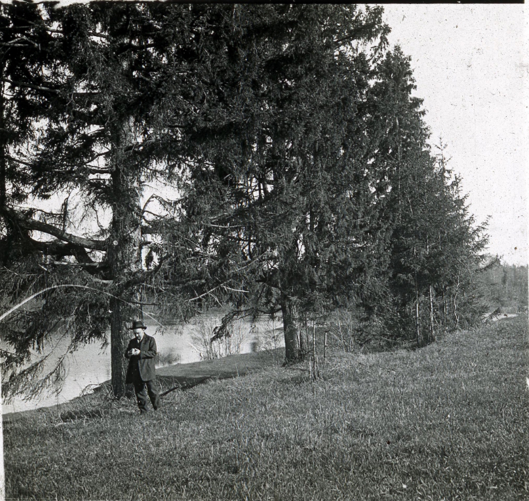 Мужчина, прогуливающийся у сосен