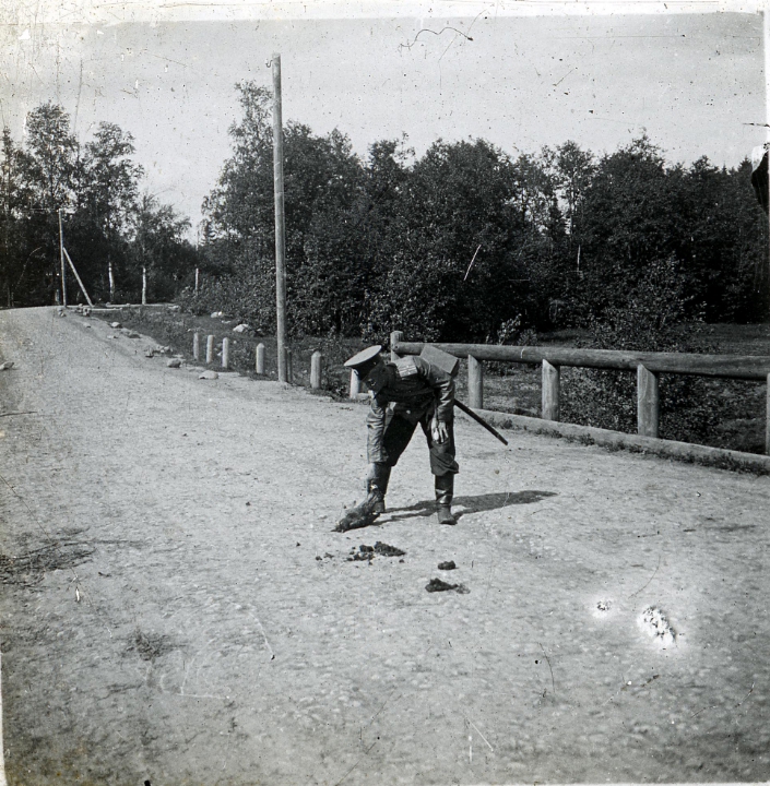 Сигсон Георгий Андреевич рассматривающий на мосту птицу
