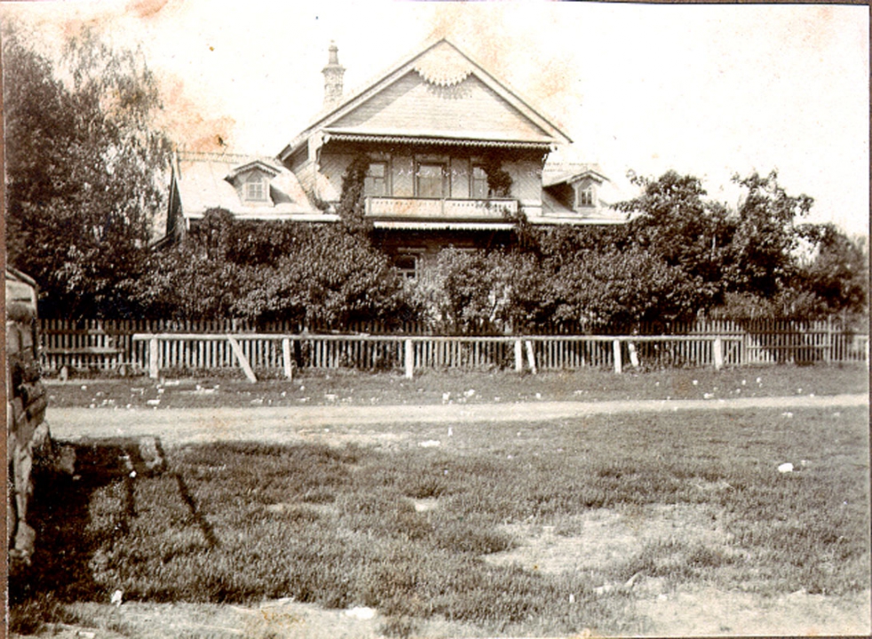 Наталия Павловна Дурдина с матерью и неизвестными женщинами у лестницы перед домом