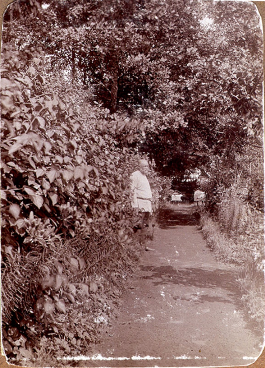 С.С.Масленников у тропинки сада.
