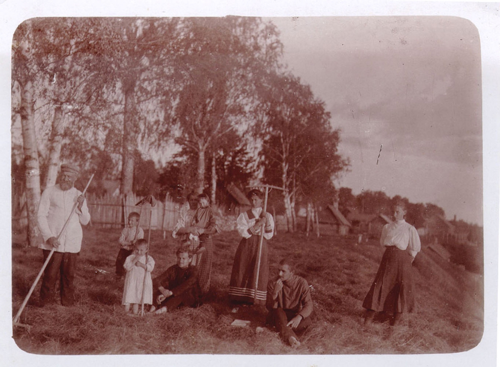 Наталия Павловна Дурдина с матерью и неизвестными женщинами у лестницы перед домом