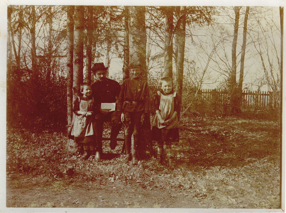 Братья и сестры Масленниковы в саду.