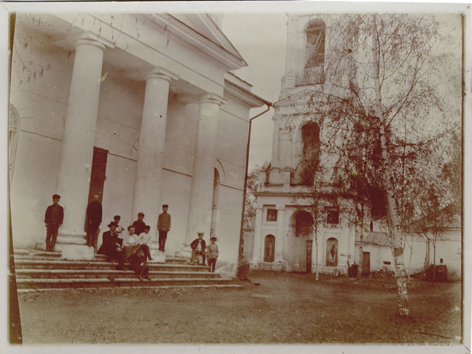 Наталия Павловна Дурдина с матерью и неизвестными женщинами у лестницы перед домом