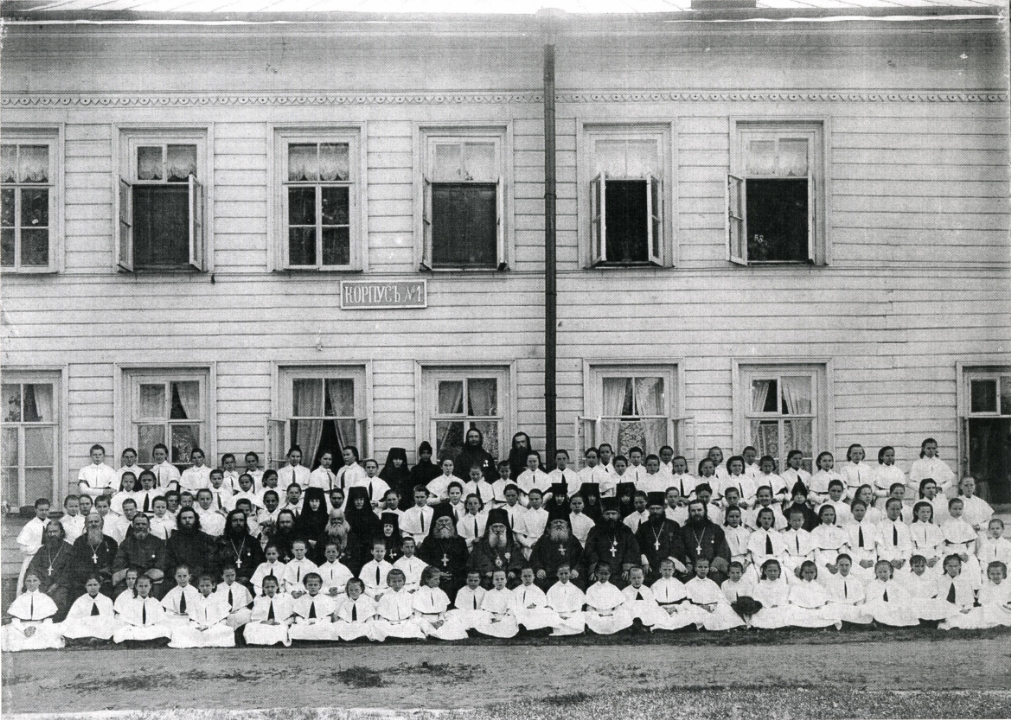 Ученицы и преподаватели церковно-учительской школы Леушинского монастыря