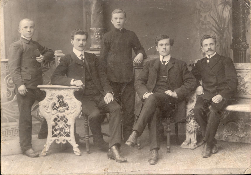 А. Владычук, конторщик фарфоровой фабрики Кузнецова в поселке Песочное, в семейном кругу