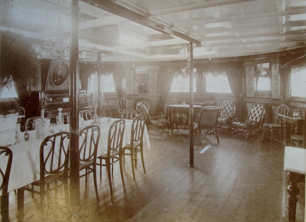 Интерьер столовой 1-го класса парохода "Геннадий Ратьков-Рожнов".