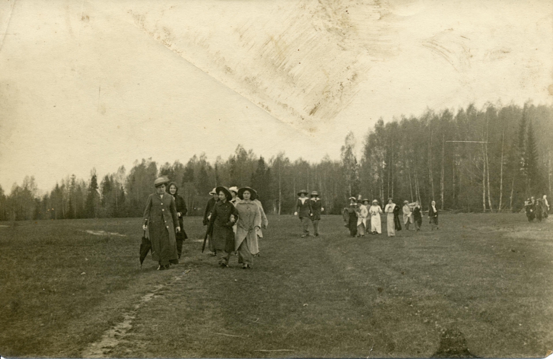 Наталия Павловна Дурдина с матерью и неизвестными женщинами у лестницы перед домом