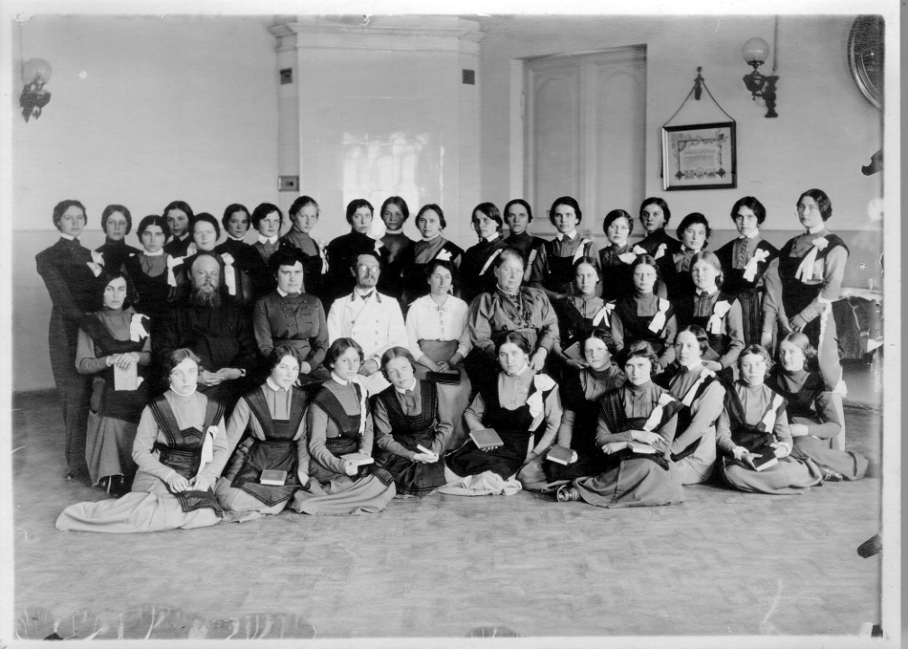 Наталия Павловна Дурдина с матерью и неизвестными женщинами у лестницы перед домом