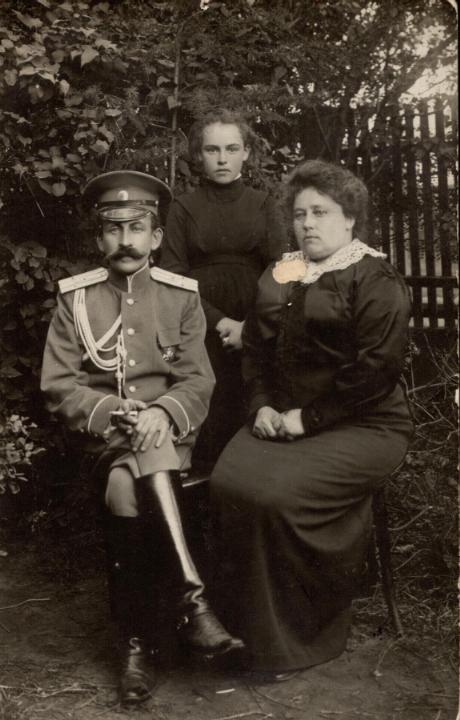 Наталия Павловна Дурдина с матерью и неизвестными женщинами у лестницы перед домом