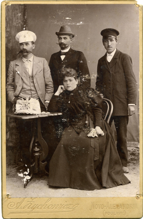 Наталия Павловна Дурдина с матерью и неизвестными женщинами у лестницы перед домом