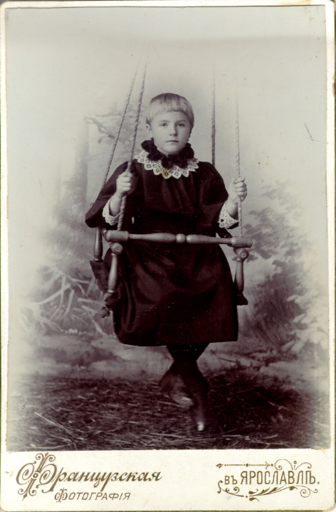 Надежда Федоровна Рудинская (?) в детском возрасте на качелях