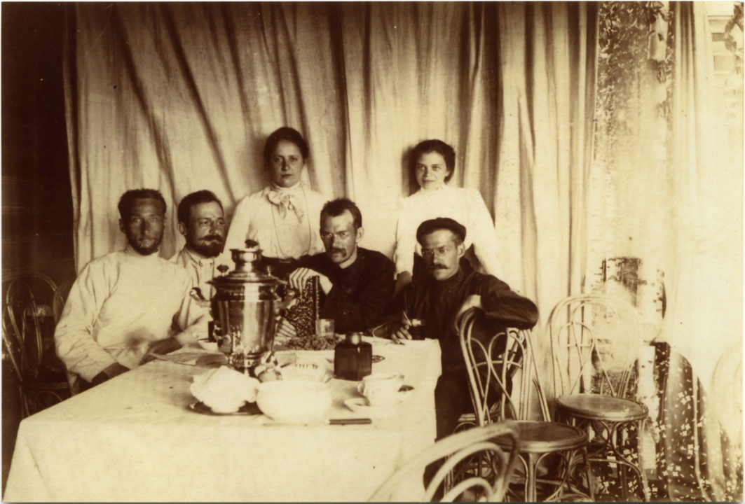 Наталия Павловна Дурдина с матерью и неизвестными женщинами у лестницы перед домом