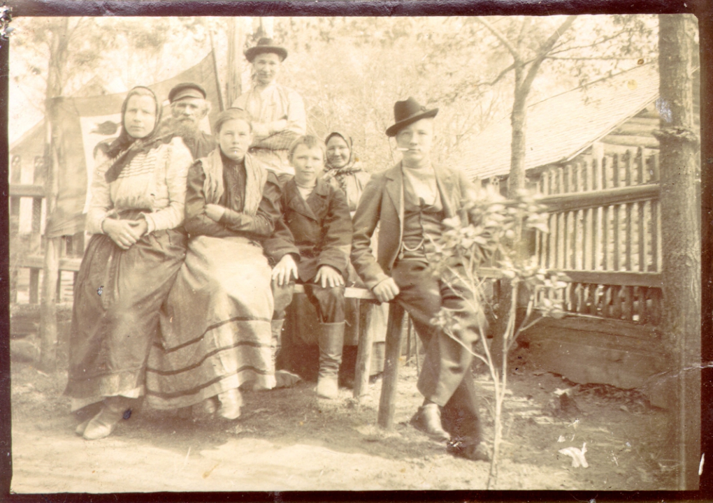 Наталия Павловна Дурдина с матерью и неизвестными женщинами у лестницы перед домом