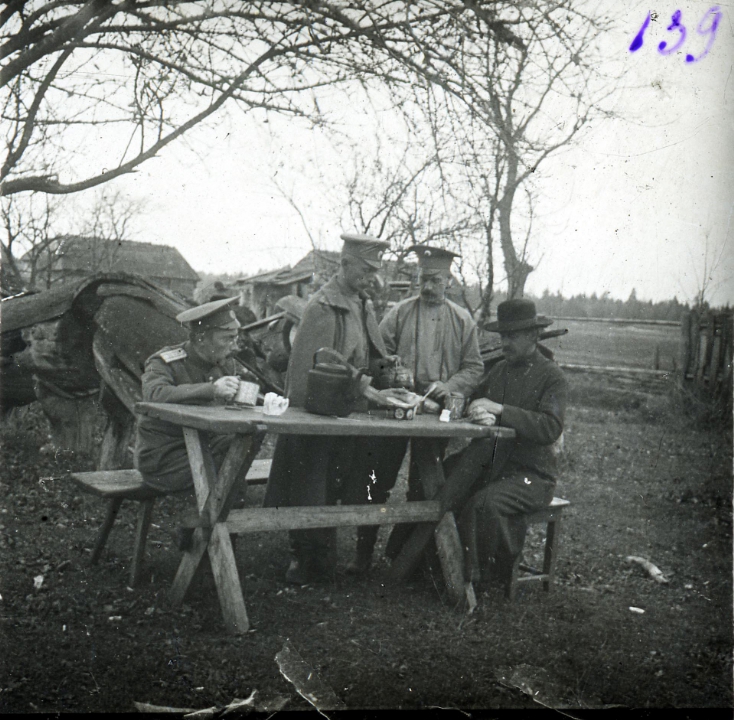 Четверо мужчин за столом пьют чай