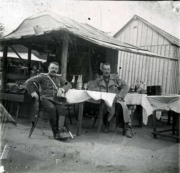 Двое мужчин за столом с белой скатертью