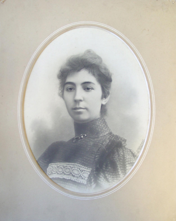 Наталия Павловна Дурдина с матерью и неизвестными женщинами у лестницы перед домом