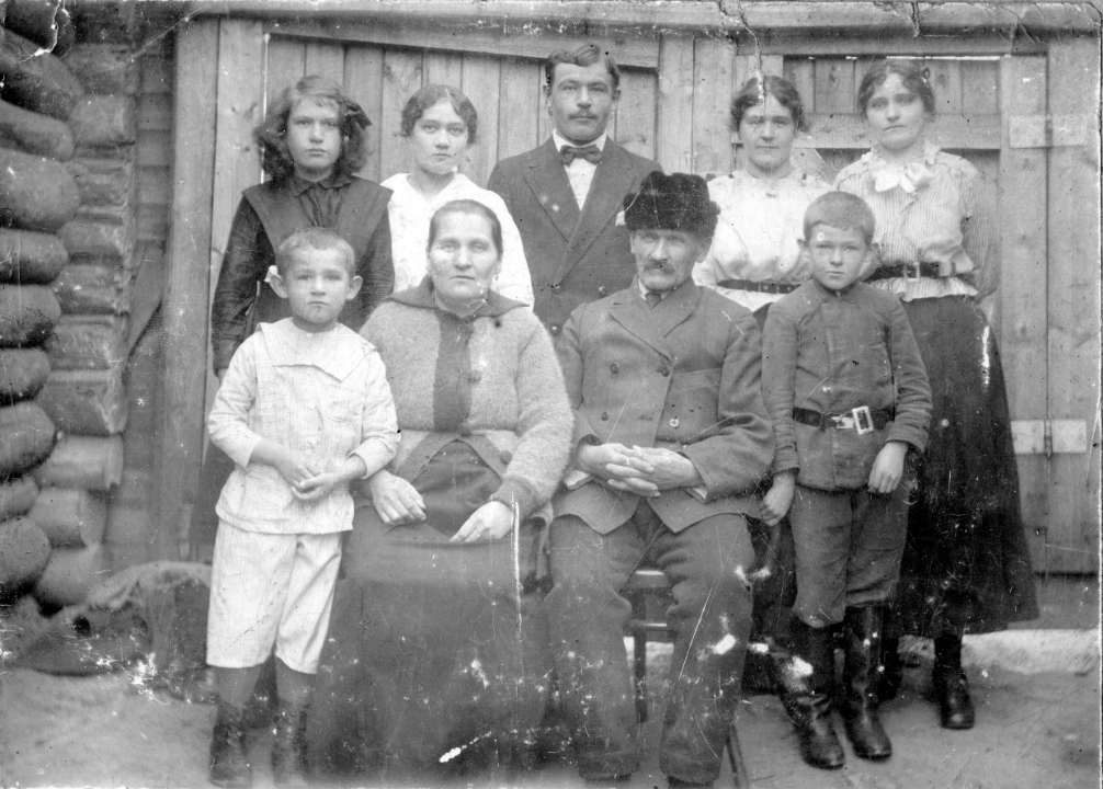 Семья мологжан на фоне ворот