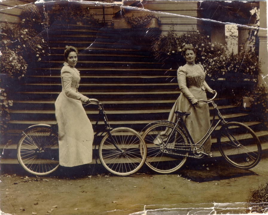 Михалкова Агриппина Владимировна и Хлебникова Надежда Иллиодоровна у усадебного дома в Петровском.