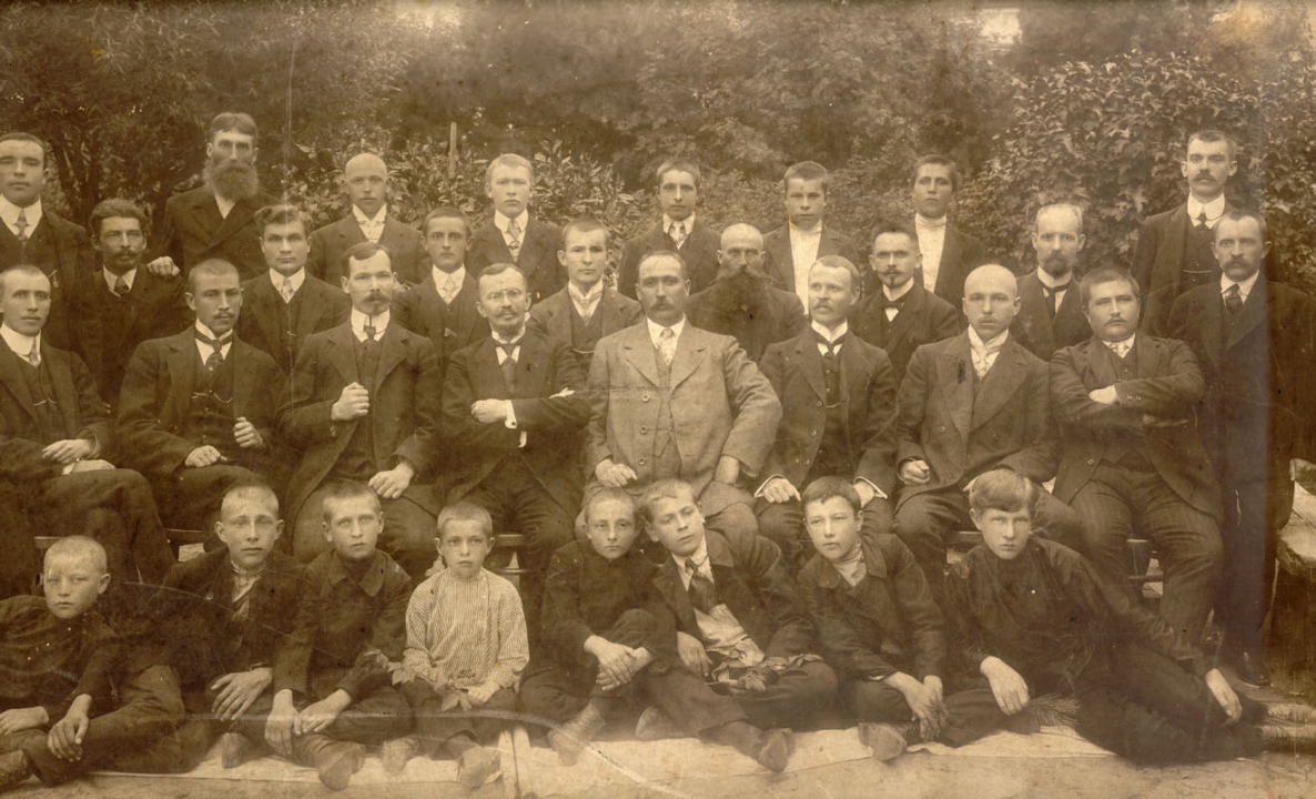 Наталия Павловна Дурдина с матерью и неизвестными женщинами у лестницы перед домом