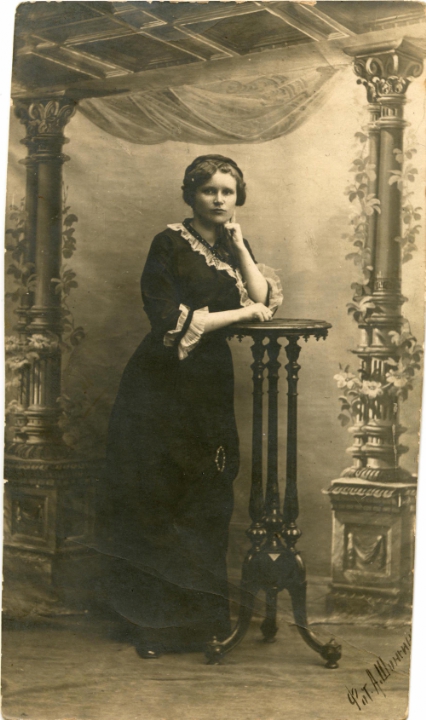 Наталия Павловна Дурдина с матерью и неизвестными женщинами у лестницы перед домом