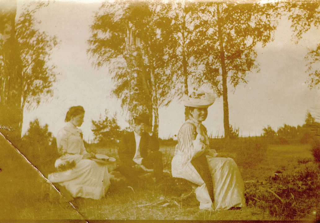 Наталия Павловна Дурдина с матерью и неизвестными женщинами у лестницы перед домом