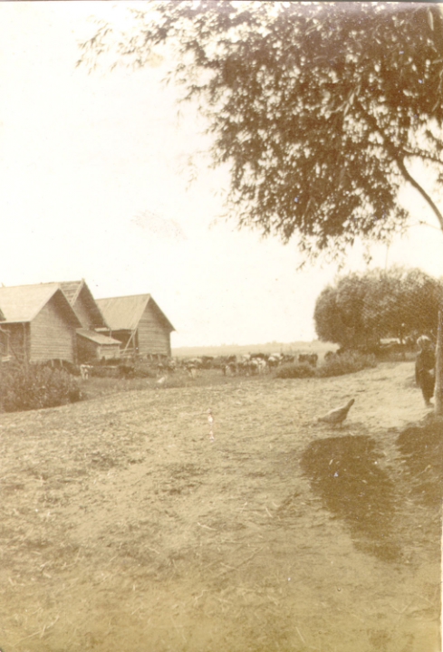 Наталия Павловна Дурдина с матерью и неизвестными женщинами у лестницы перед домом
