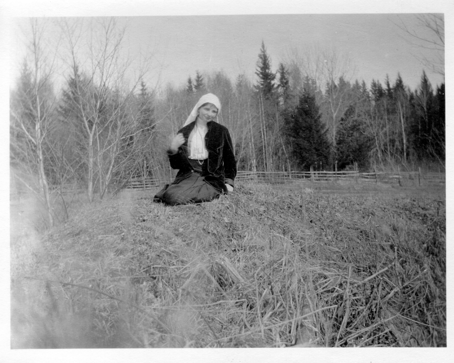 Наталия Павловна Дурдина на лестнице перед домом с неизвестными женщинами