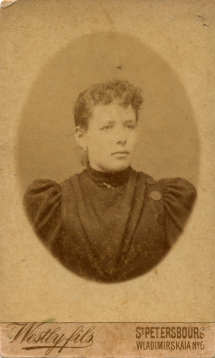 Наталия Павловна Дурдина с матерью и неизвестными женщинами у лестницы перед домом