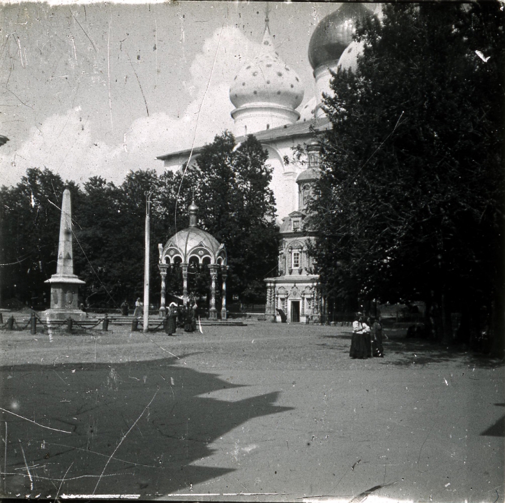 Вид на Сень над крестом, Надкладезную часовню, и Успенский собор в Троице-Сергиевой Лавре