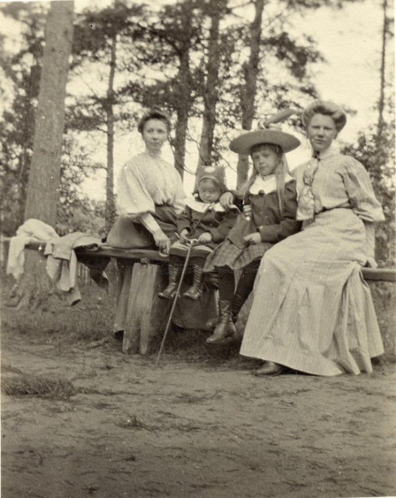 Нина и Марианна Дурдины на скамейке с двумя женщинами