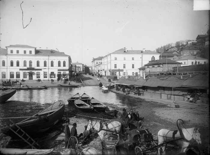 Вид на Нижний базар и Рождественскую улицу во время половодья. к. XIX в. г. Нижний Новгород