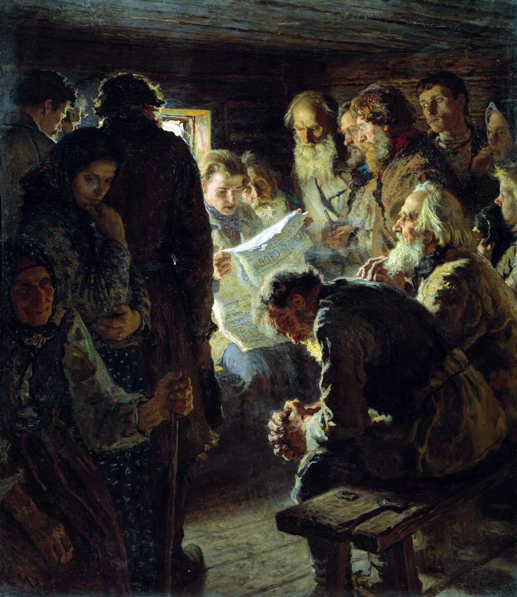 За чтением газеты. Вести с войны.