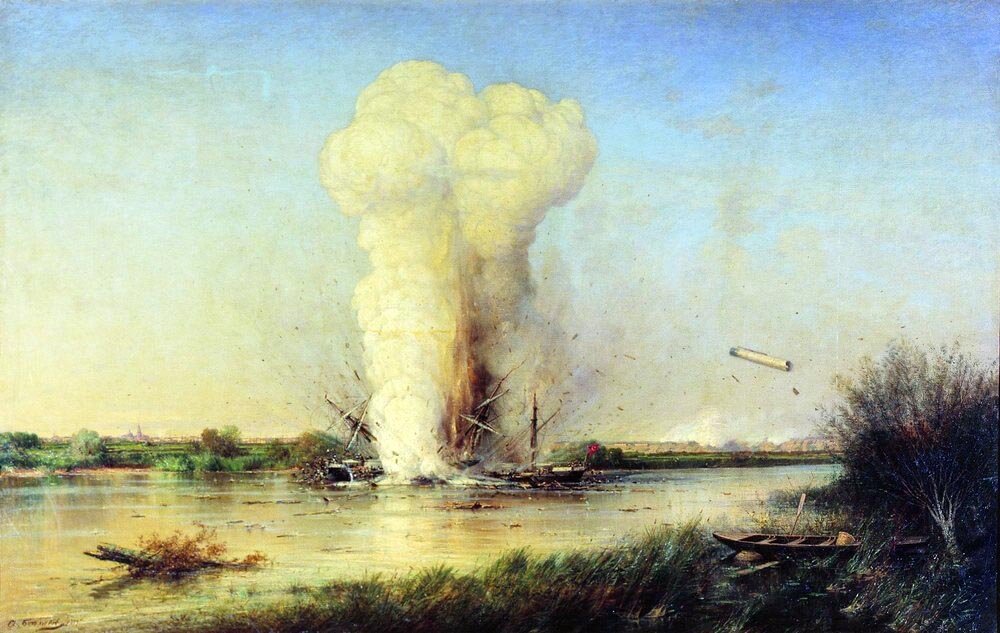 Взрыв турецкого броненосца «Лютфи-Джелиль» на Дунае 29 апреля 1877 года.