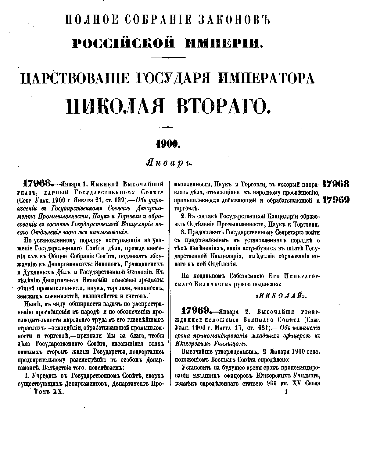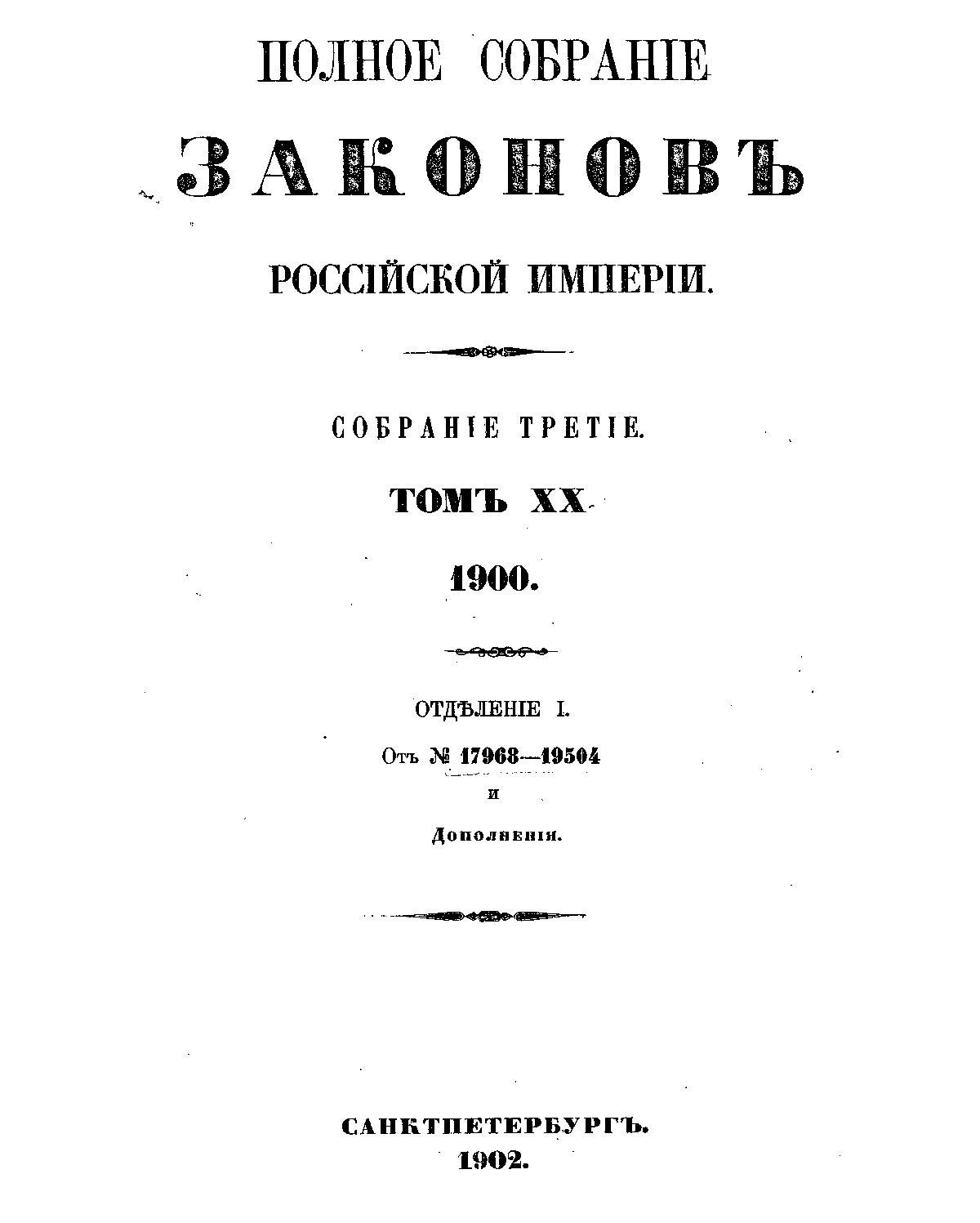Полное собрание законов Российской Империи. Собрание Третье. Том XX. Отделение 1