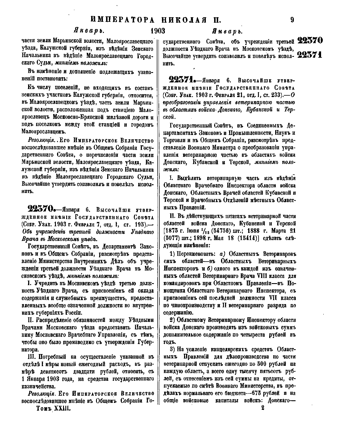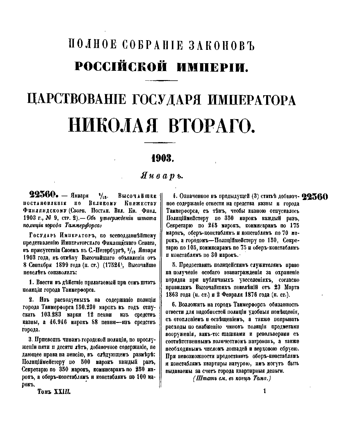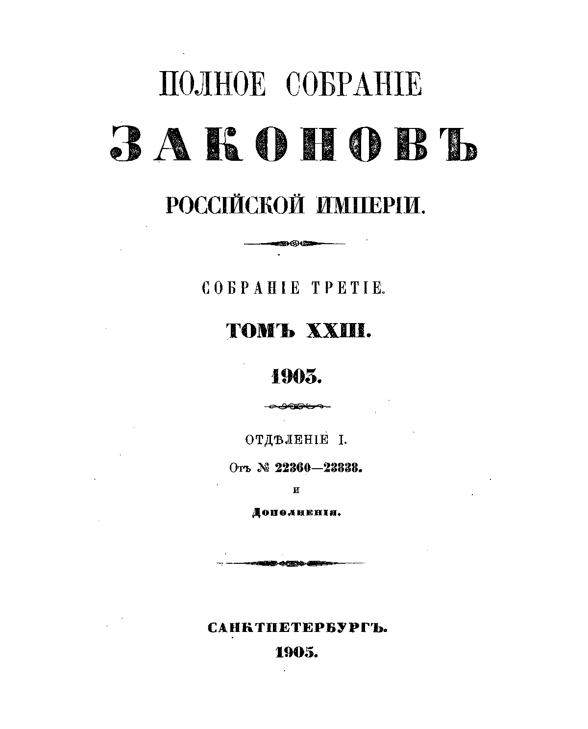Полное собрание законов Российской Империи. Собрание Третье. Том XXIII. Отделение 1
