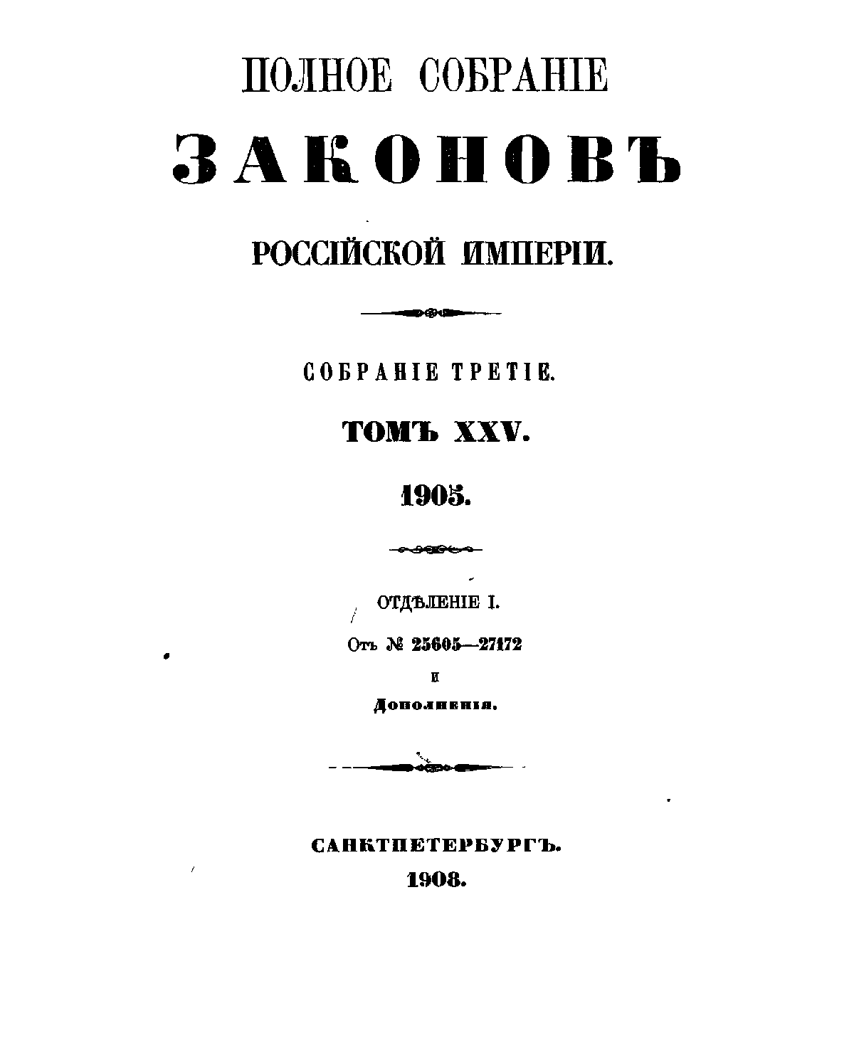 Полное собрание законов Российской Империи. Собрание Третье. Том XXV. Отделение 1