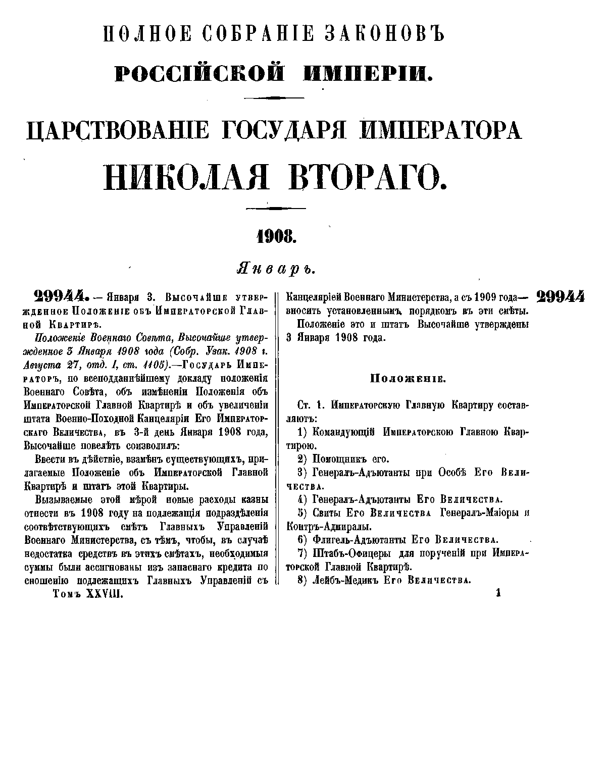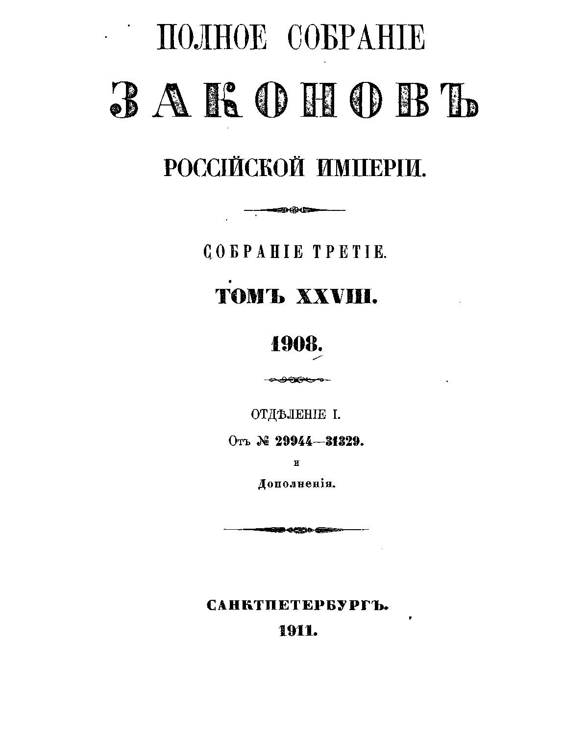 Полное собрание законов Российской Империи. Собрание Третье. Том XXVIII. Отделение 1
