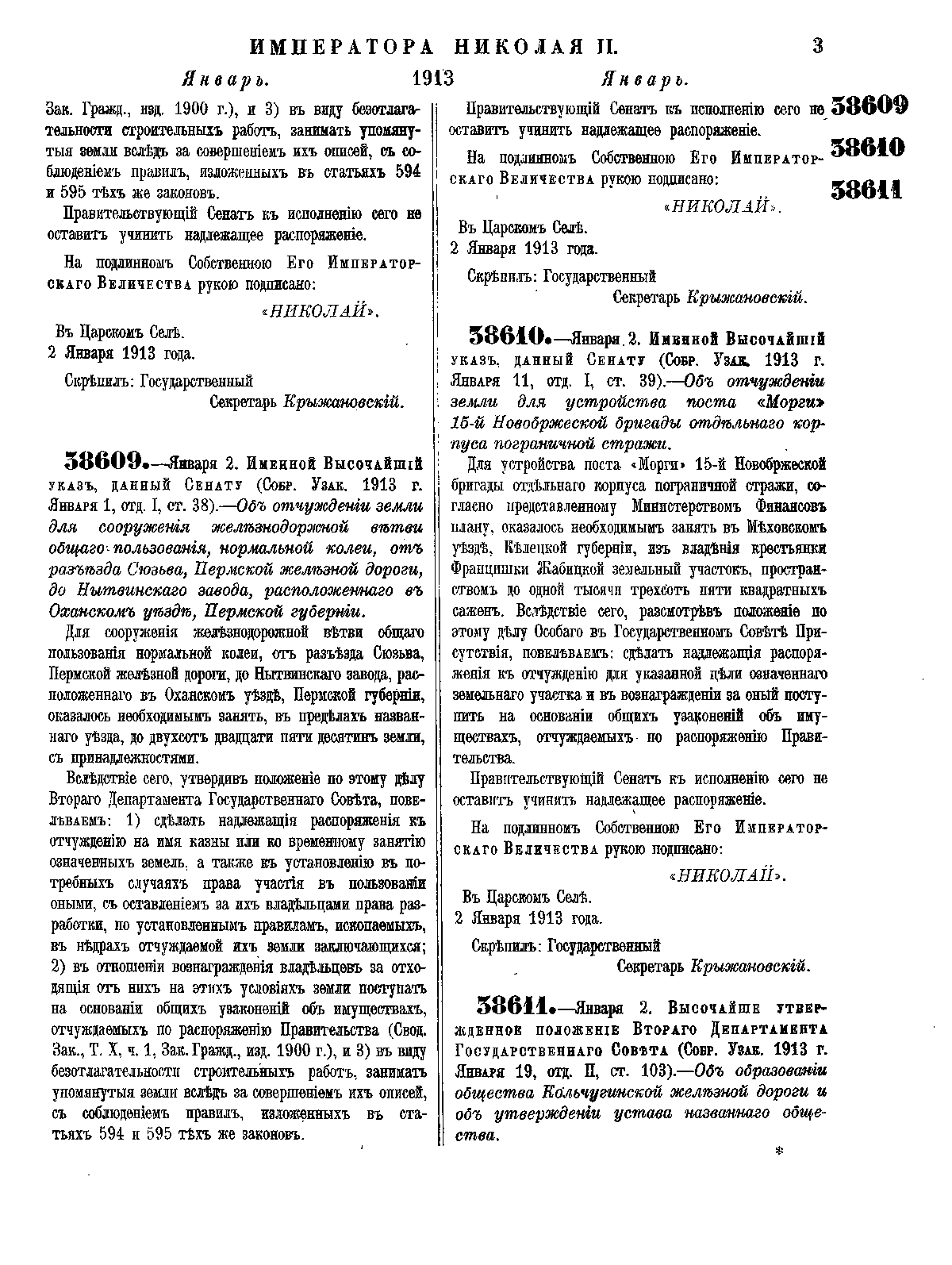 Третье издание выходило ежегодно до 1916 г., включает более 40 тысяч законодательных актов с 1 марта 1881 г. до конца 1913 г. — время правления Александра III — Николая II (33 тома).