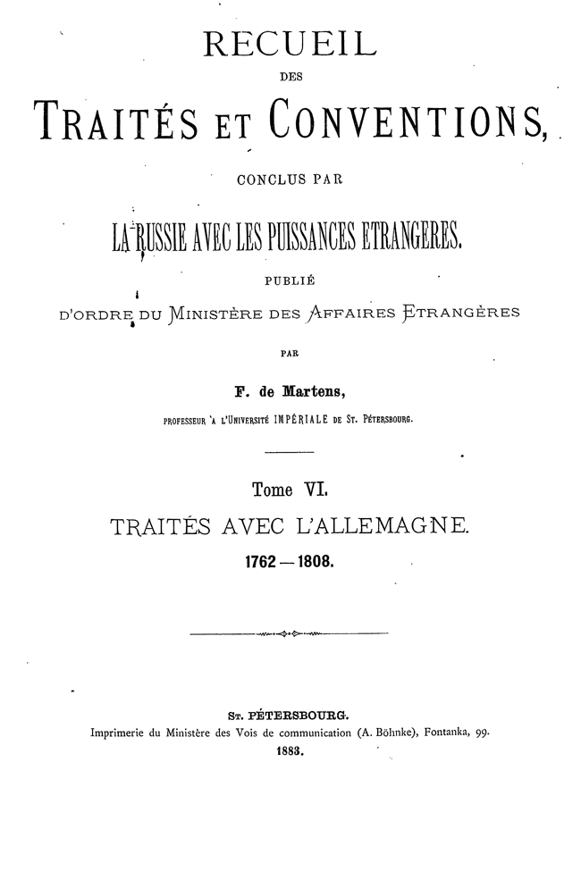 Собрание Трактатов и Конвенций, заключенных Россией с иностранными державами. Том VI. Трактаты с Германией.
